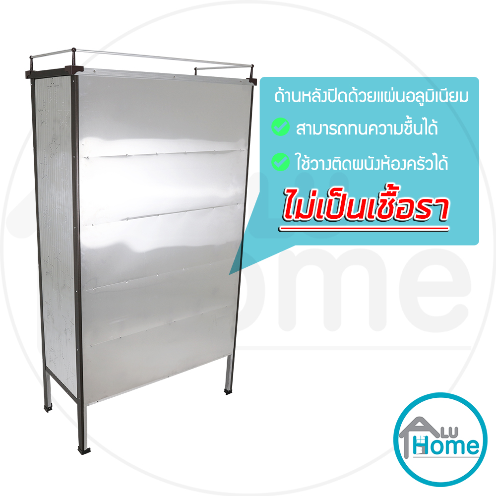 ✔ ด้านหลังเป็นแผ่นอลูมิเนียมเรียบ ใช้วางติดผนังในห้องครัวได้ ป้องกันความชื้นและฝุ่น