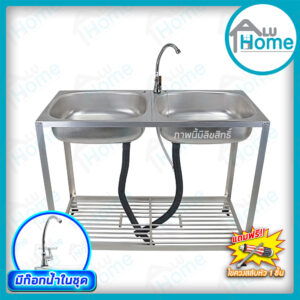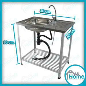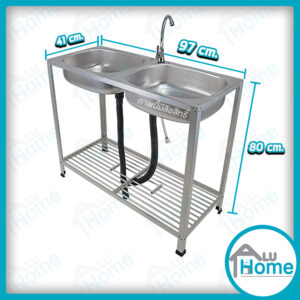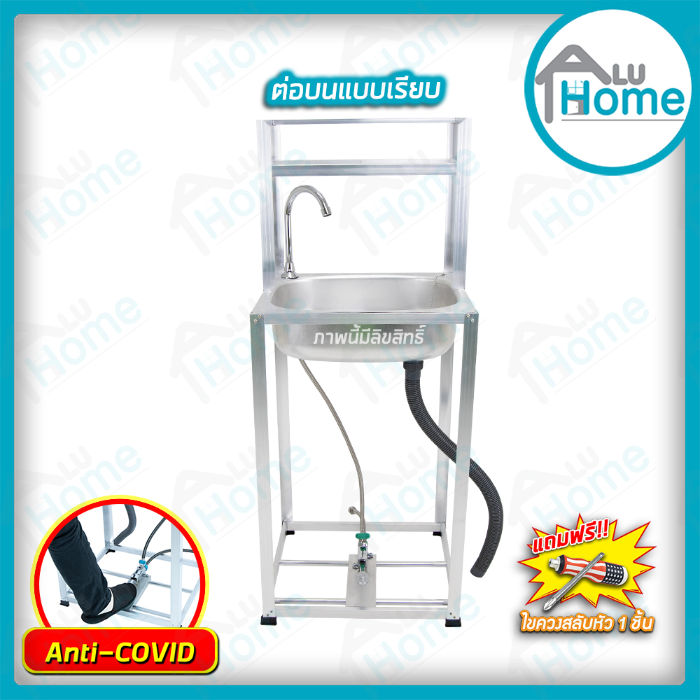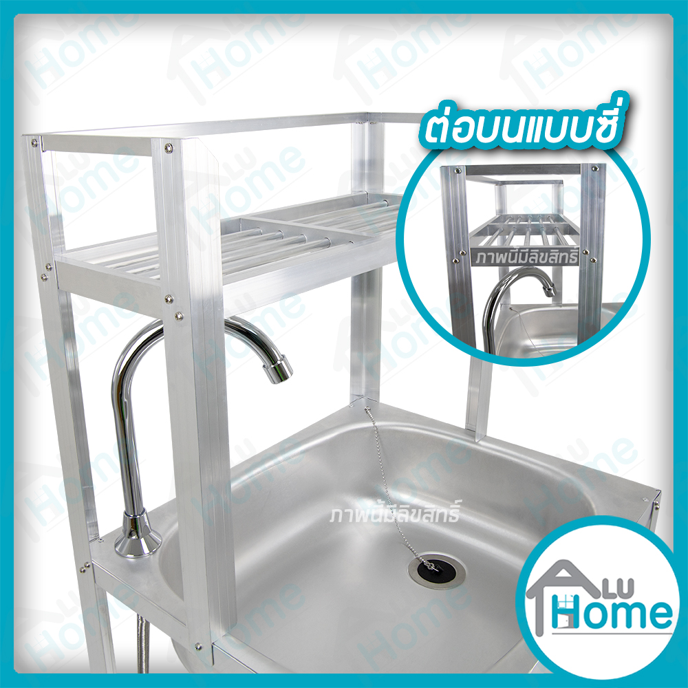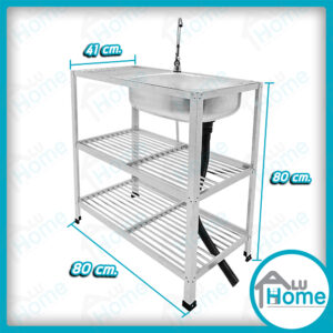 อ่าง อลูมิเนียมก๊อกน้ำเท้าเหยียบ เดี่ยว ต่อบนเรียบ 🎯ขนาด 41 x 49 x 120 ซม.🎯 [ เดี่ยว ] + [ ต่อบนเรียบ] + [ ชั้นคว่ำจาน 2 ชั้น ]