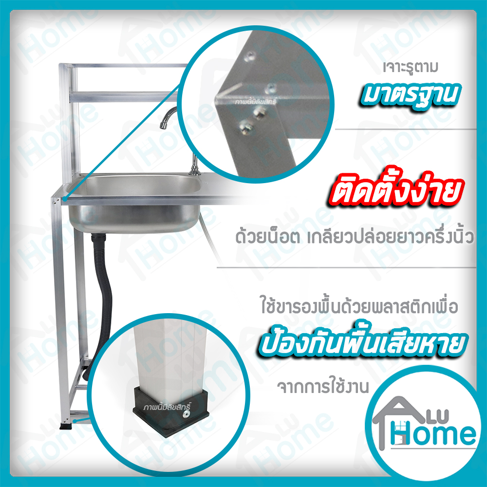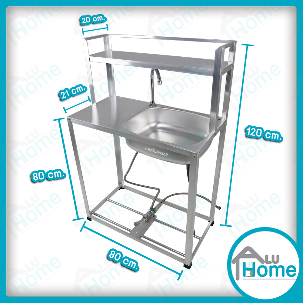 อ่าง อลูมิเนียมก๊อกน้ำเท้าเหยียบ ต่อข้างเรียบ 80 cm. ต่อบนเรียบ
